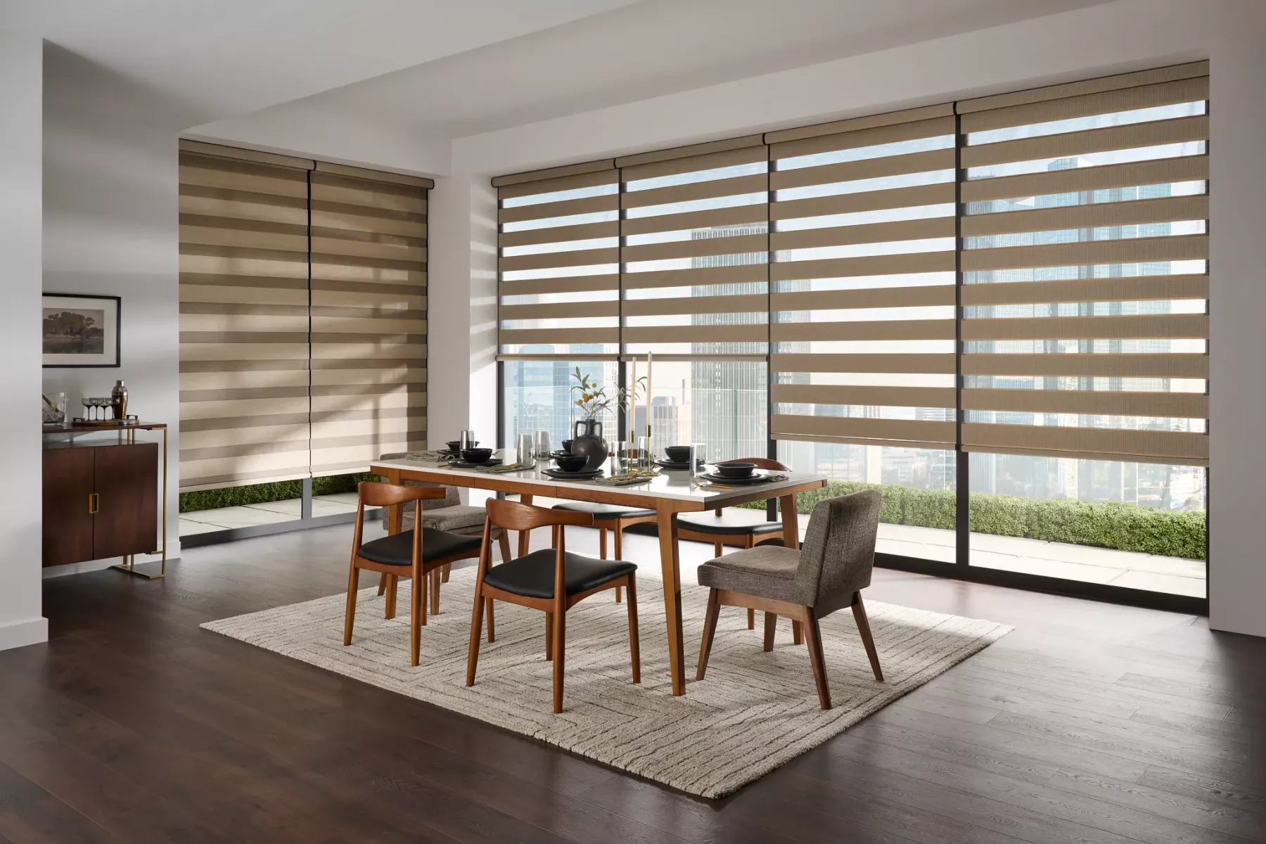 Fabric-wrapped bottomrail is standard for a consistent, seamless look.
